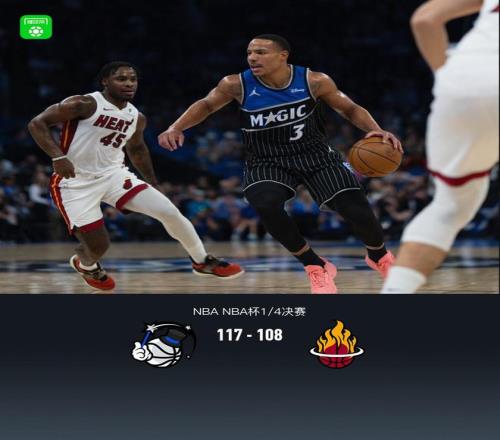 北京时间12月10日NBA NBA杯1/4决赛,奥兰多魔术对阵迈阿密热火。半场魔术56-57热火,最终魔术117-108热火。